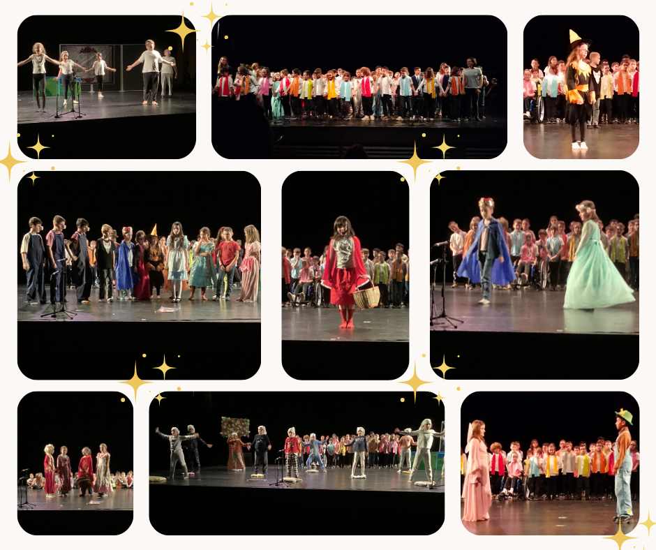Nous avons été véritablement envoûtés par la comédie musicale des CM1, consacrée aux contes revisités. Ce spectacle, mêlant avec talent danse, théâtre et chant, a demandé plusieurs semaines de travail et d’investissement de la part des enfants.