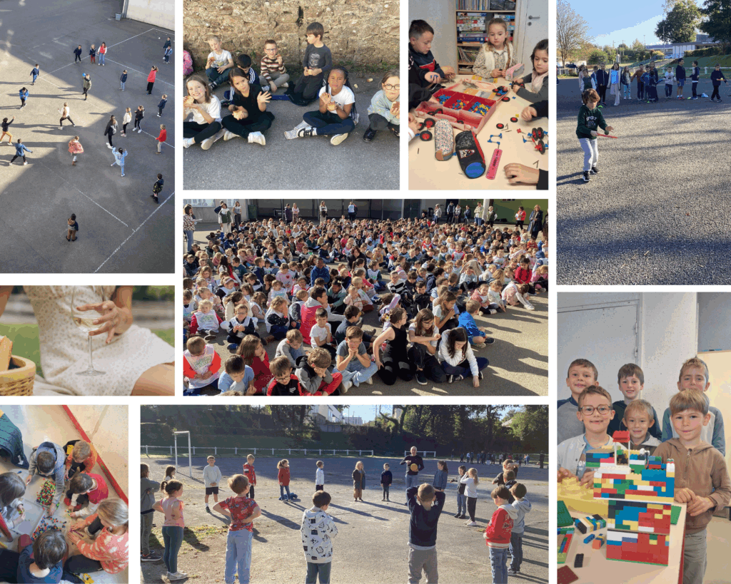 Après divers jeux et ateliers pour faire connaissance, tous les élèves se sont regroupés sur la cour pour un joli temps de partage.